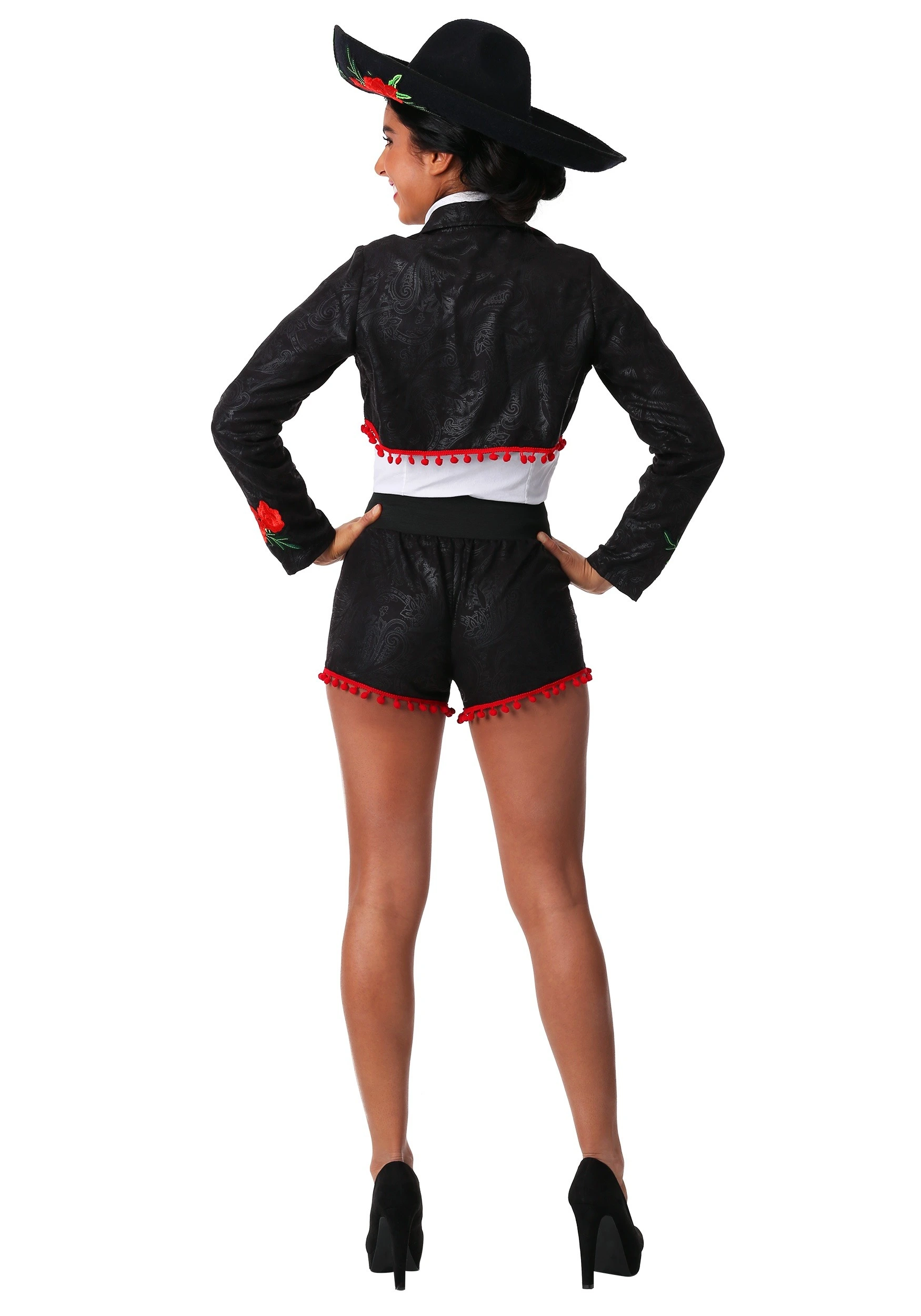 This costume is Made-By-Us, making the chances of running into anyone else wearing your look almost non-existent. Our in-house designers researched traditional Mariachi costumes to create a look with a feminine twist. You’ll love this high-quality costume with it’s cropped jacket and high-waisted shorts. Both pants and jacket have flower details and pom poms trimming the hems. The shorts and jacket are accented with bright Polish off the whole look with a red tie and a gorgeous sombrero.