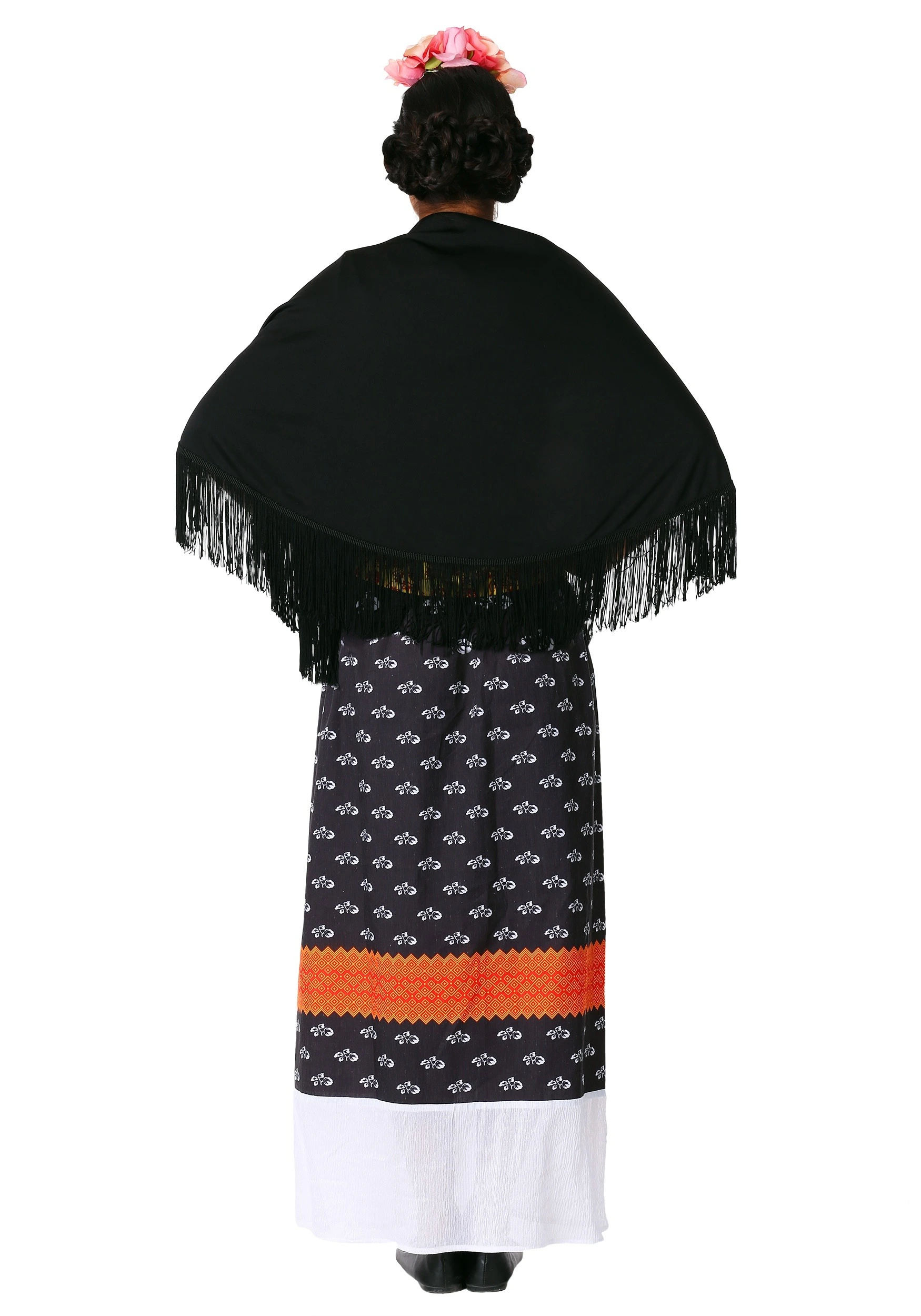 This Women’s Frida Kahlo Costume comes with everything you need to turn yourself into your favorite art icon—except Frida’s innate painting talent…and her signature unibrow. But that’s nothing a few art classes and some eye pencil can’t fix, right? With this culturally-inspired costume, you simply need to perfect your braiding skills and layer on these lovely pieces—the top, skirt, headband, and shawl—for an authentic, Frida-inspired appearance. The shirt features a red floral print over a yellow base, while the long, peasant-style navy skirt has a leaf pattern and bold orange accent stripe. Somehow, all the contrasting colors and patterns work in an artful way! The shawl and headband, though, truly tell the world “Hello! I’m Frida Kahlo!”