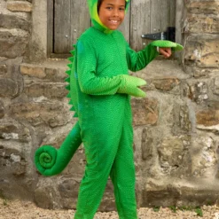 This officially licensed Disney Tangled Pascal Kid Costume is perfect for any Disney fan. Suit up your child in the green jumpsuit that is printed to keep to Pascal’s standard style. The jumpsuit zips up the front and features a stuffed tail and chameleon fins on the back. Foot covers transform their feet into the two-toed chameleon look and the headpiece features his famous face to complete your kiddo’s costume. Bring their Disney dreams to life in true Tangled style!