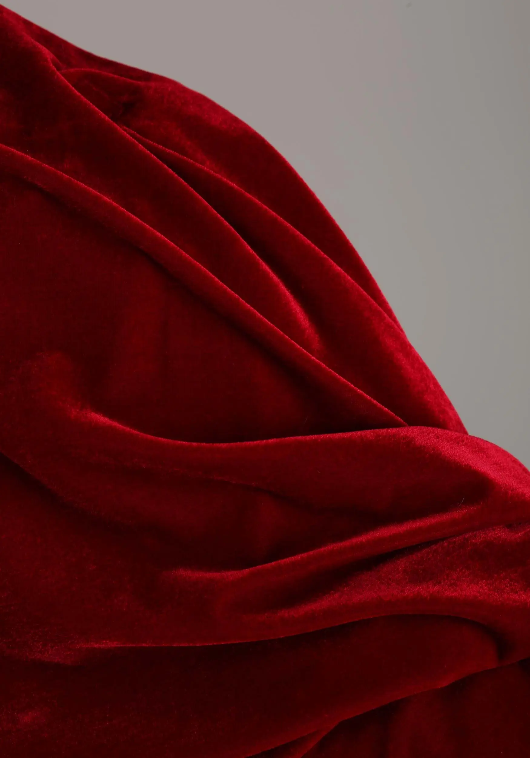 - Red velvet cape has hook and loop fastener to secure around your shoulders