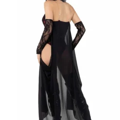 - Cape has ribbon ties at neck, also sliver-tone chain w/ Playboy emblem charms & lobster-claw clasp
